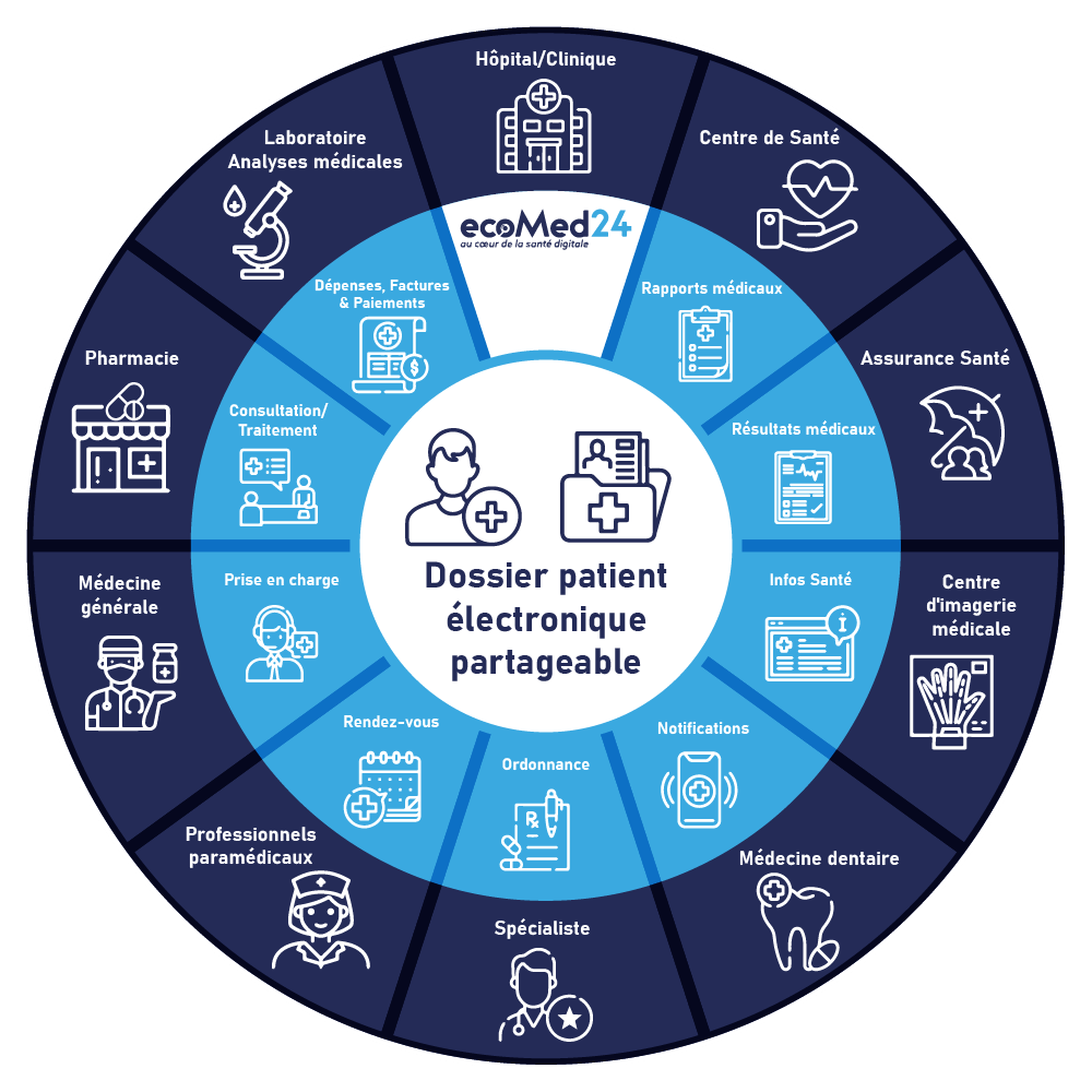 Antécédents, allergies, examens passés et prescriptions, accessibles immédiatement.